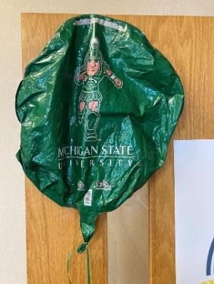 Anyway, all that to say that I am a Michigan fan and wore some apparel last week Friday in honor of that. I also made a deal with some students that if MSU won the football game last week Saturday, then I would hang an MSU balloon on my office door.
