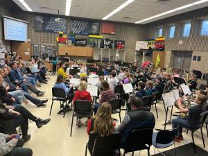 They pick up some musical knowledge by playing the ukulele in 3rd grade and the recorder in 4th grade. Once they get to 5th grade, they choose either orchestra or band. The part that amazes me is how much they learn from September up until now. The simple fact that they can play songs already is one thing, but the ability to hear themselves in a larger group and the dynamics that exist in order for the entire band (or orchestra) to sound so great is another.