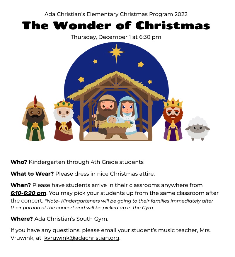 Celebrate the Christmas season with us at Ada Christian School.