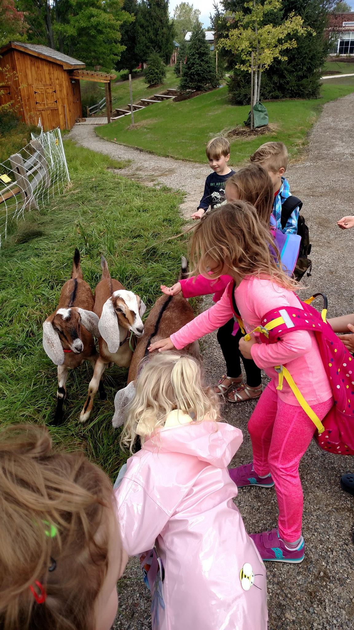 We plan on keeping the goats for a three-week trial period to see how it goes. A goal is for each grade to have at least one 30-minute goat lesson during the next three weeks. Students will only be by the goats with a teacher present. The goats will be contained by a well-marked, solar powered fence (in a non-recess area).