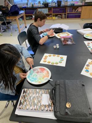Science: This week we investigated color- additive and subtractive color. We made color wheels with Nilla wafers, frosting, and food dye. Next week we will be looking into refraction of light.