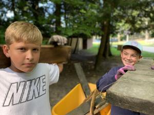 Service Project: God is so good. We were blessed with perfect weather yesterday, positive attitudes, and many good moments. We spent much of the day cutting and moving wood, digging out a backstop, cleaning cabins and the dining hall, rebuilding stairs that were falling apart, shoveling gravel, and digging weeds out of cracks. Good work was done, relationships were built and strengthened, and capture the flag was played. We are so proud of the incredible 7th and 8th graders we have here at ACS.