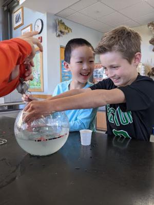 Third grade enjoyed some silly snowshoe races in January! We also learned about how birds who stay in the snowy months seek shelter.We were able to hang some nesting boxes to keep them safe and warm. In February the preparations for spring began as we planted violas to share with our neighbors on earth day. Lastly, we dove deep into beak adaptations that God gave birds. We had a blast practicing collecting “food” with different types of tools that act like beaks.