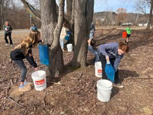 In 7th grade OE we are connecting the chemistry students learned in science to fire starting. After a few notes on how to start fires we went outside and tried to start our own fires using flint and steel one day and ferrocerium rods. It’s a challenging task in this weather but we had some success. We also were fortunate enough to find a time to snowshoe with a combined OE/PE session. It was great to teach the basics, learn how they work and just enjoy the beauty of the snow. As we reached the end of February, we began collecting sap. We’ll continue to learn about the syruping process and 7th graders will work together to collect the sap around campus.