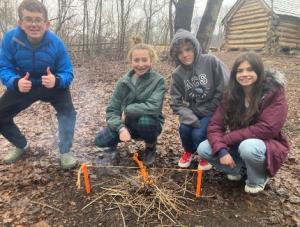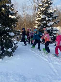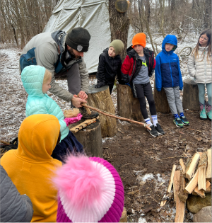 Second grade began with some time at Native American village. We spent time visiting the 3 structures they lived in and talking about what life was like for the Native Americans. We focused on how they were able to find all they needed from what was in nature and how smart and resourceful they were. Later we learned how they would use a bow drill to make fire. We followed the demonstration with some cooking over the fire to enjoy a staple of the Native Americans, corn. We enjoyed parched (toasted) corn and popcorn. 2nd grade ended the month enjoying the first big snow of January with some snowshoeing in the woods.
