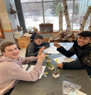 January was a mild one for us. We missed out on snow until the very end of the month and then we quickly took out the snowshoes to make sure we had a chance to enjoy them. Leading up to the snow we still found many ways to enjoy God’s creation while outside as well as enjoy learning about God’s creation inside. We spent time in the greenhouse planting and eating, we had a puppet show in which we learned about how animals behave in winter, we searched for birds and identified them around the campus, and learned how to start fires. With or without snow we had a great time in OE in January.