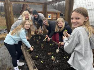 Spring has been busy in the OE world and we have a double dose of Whatcha Doin’ with some highlights from March and April. March’s main focus was the sugar shack. We tapped almost 70 trees and made 11 gallons of ACS syrup! A special thanks to all those who helped make that possible. March is a cold messy month, but the sweetness of the maple and the steam billowing from the sugar shack are always hopeful signs of spring. As we continued into April, new signs of life began to emerge. Among the new life was the always exciting arrival of baby goats! We currently have 15 baby goats (beating last year’s record of 13!) residing in the barn at ACS. Students enjoyed visits to watch them cuddle in the straw or trying out their moves as they leap in the air.