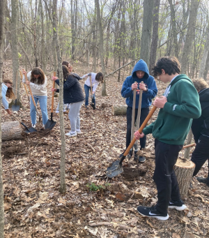 Our 8th had a variety of different schedules so for some of them it seemed like we hardly even met. When we did meet though, we worked on the legacy project. The 8th graders chose to work on adding challenges to the team challenge course for their project. We began our time by planning which challenges would be a part of the project. We ended up creating a few options. One involves laying a series of planks on edge from stump to stump that the team would need to travel across. Another challenge utilized a few platforms that have two goals. First seeing how many could fit on two platforms and second using planks to cross a gap between the platforms (but the planks are not long enough on their own). Students also added stumps for a future meeting location where classes can sit and discuss the results of the team challenges. Lastly, students began the work on a wire tightrope between trees that teams need to work together to get across. The 8th grade class did great work in the various tasks like burying and chiseling stumps, cutting boards to length, setting posts, screwing boards to the platform, moving stumps and much more. We really appreciate all the good work from the students as this project will have a great impact on classes as we use it for fun and teaching skills for working together.