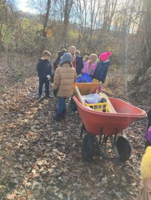 November was another great month in outdoor education as we were able to hold on to the fall weather until the very end of the month when we finally welcomed winter to the ACS kingdom. Great fall weather allowed for a number of outdoor activities like investigating weather with pinwheels, running an Oregon trail simulation with wheelbarrows, and freeing trees of invasive vines.